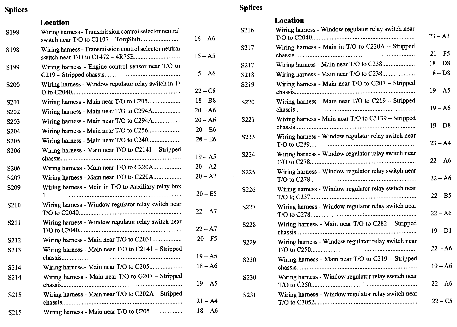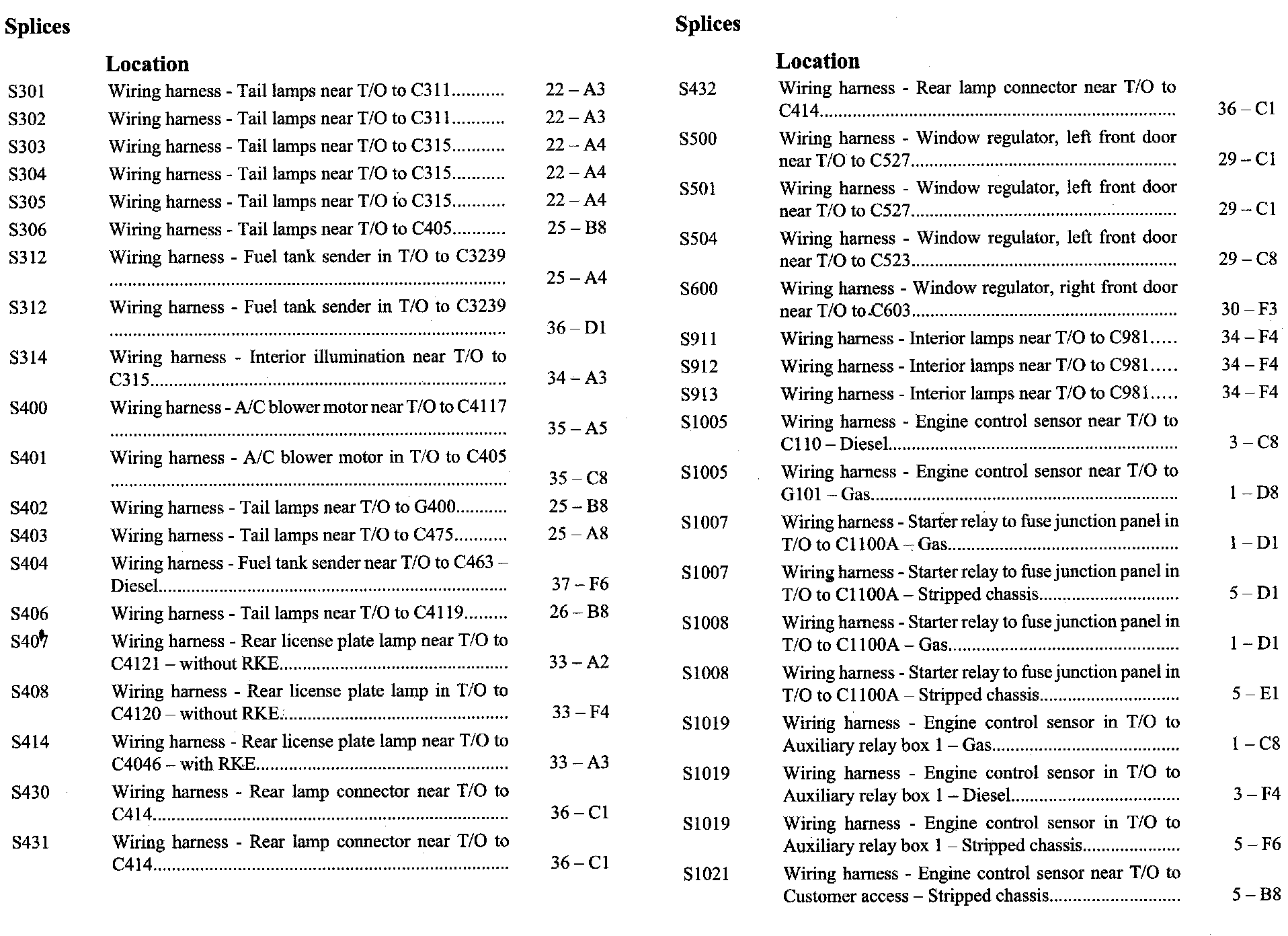 PLEASE NOTE: If a link on the Splices Location Index to a View is not provided, that means that the Splices and/or View in question does NOT apply to the vehicle model selected.