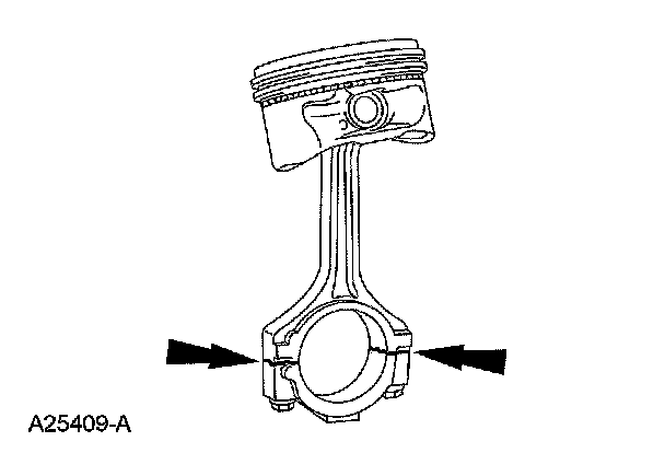 1. NOTE: The connecting rod large end is a matched set. The connecting rod cap must be installed on the original connecting rod in the original position. Do not reverse the cap. Parts are not interchangeable.