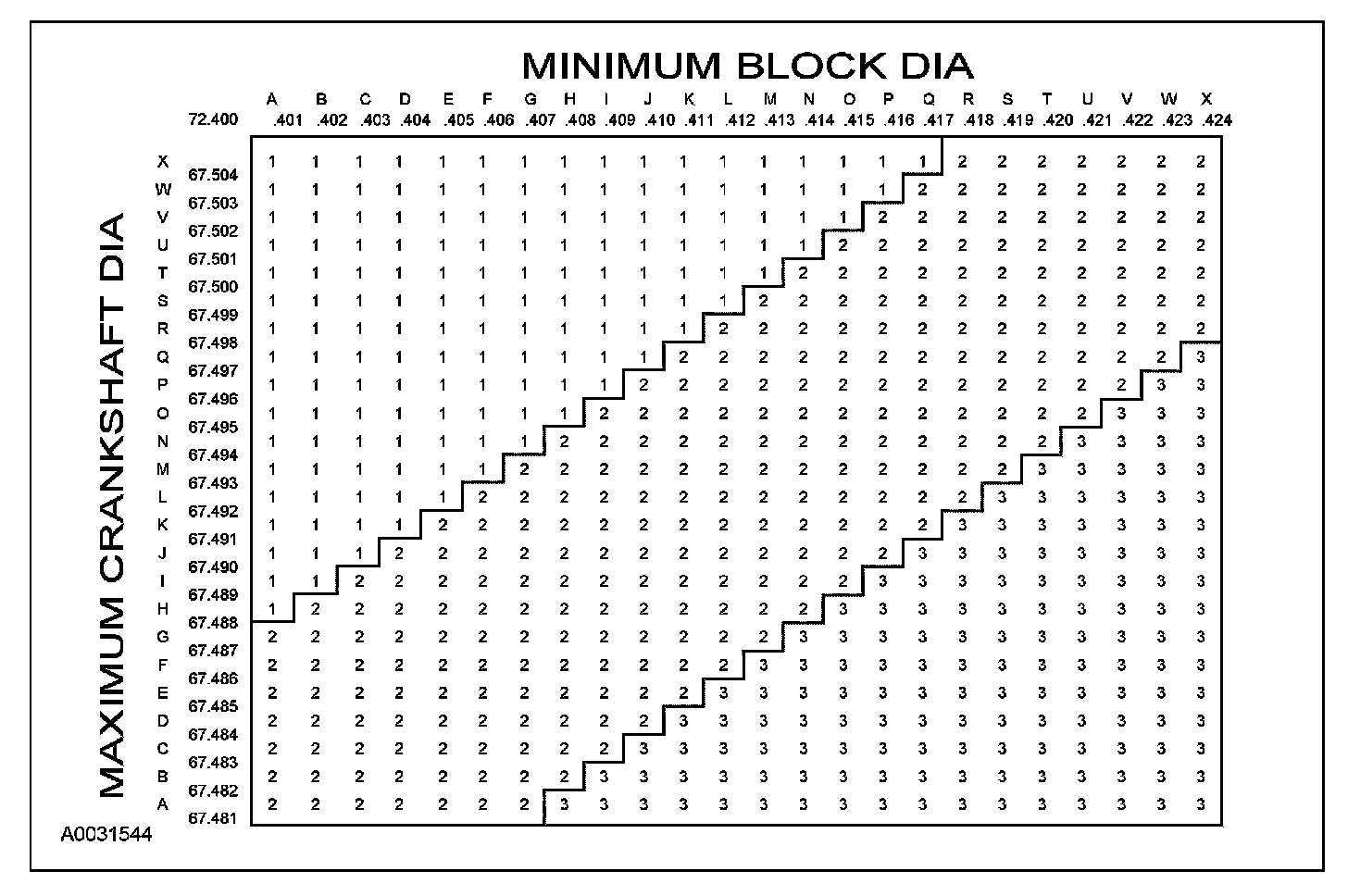 Big end journal inside diameter with assembled liners 53.049-53.027 mm