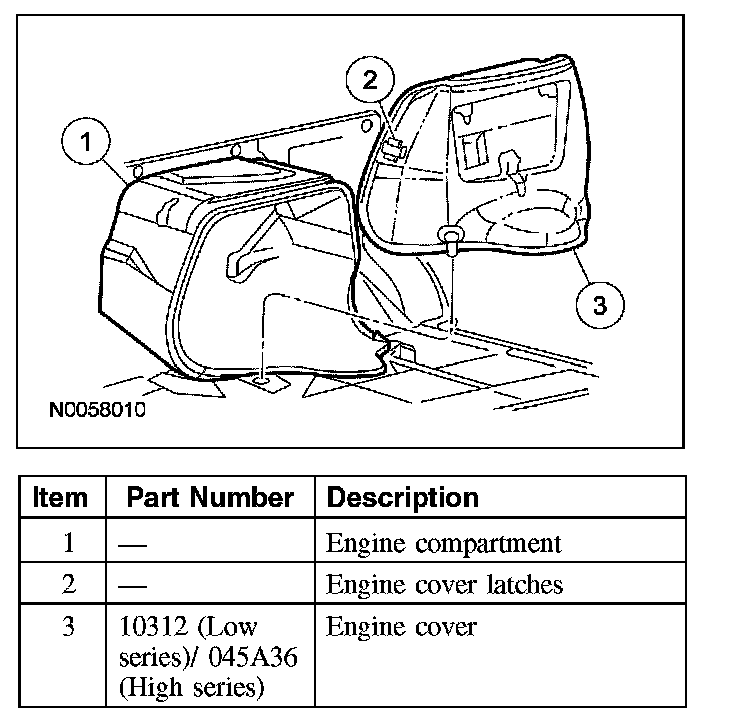 - Lift the engine cover upward from the floor and remove from the vehicle.