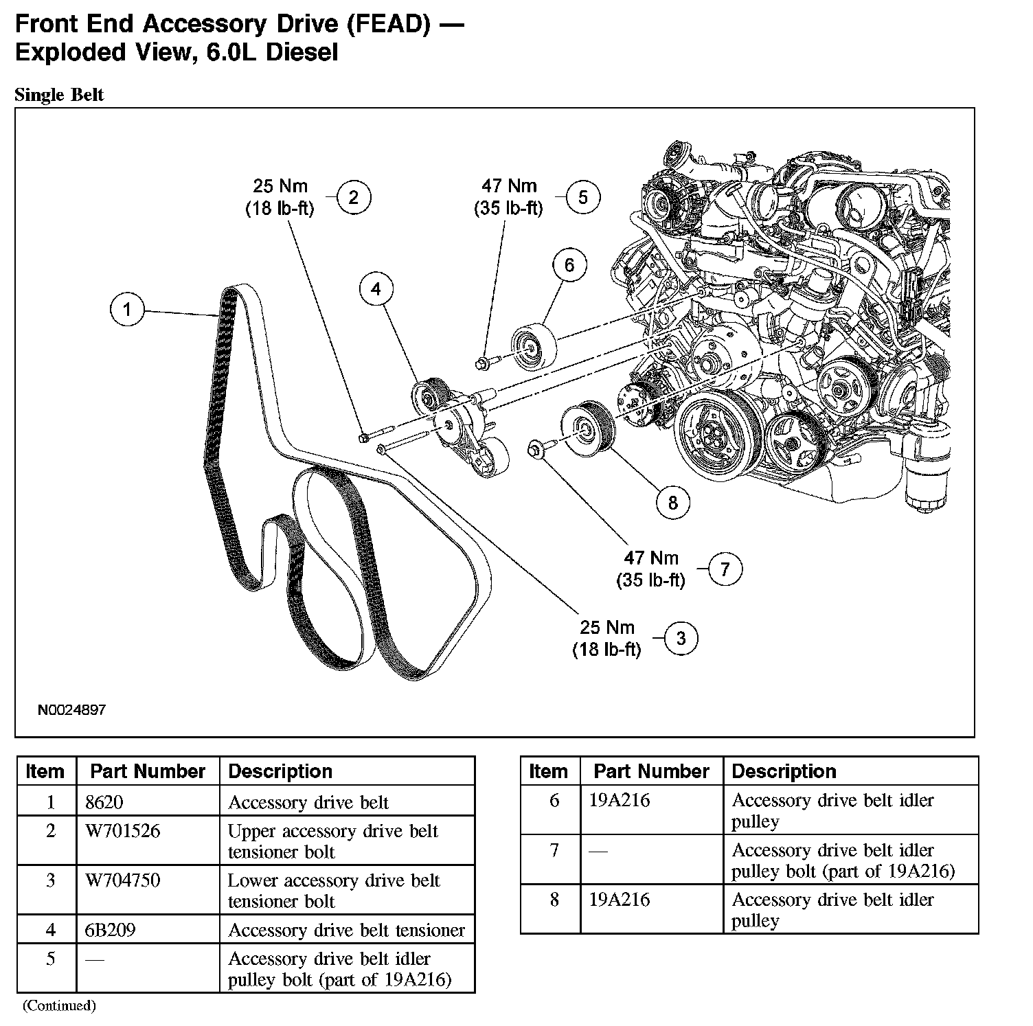 Front End Accessory Drive (FEAD) - Exploded View, 6.0L DieselFront End Accessory Drive (FEAD) - Exploded View, 6.0L Diesel (Single Belt):
