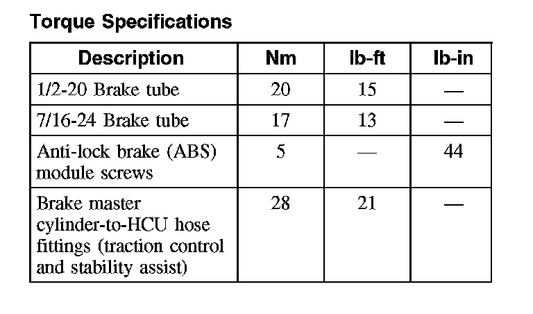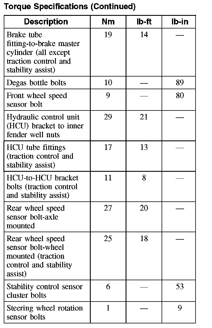 Torque Specifications (Part 1):