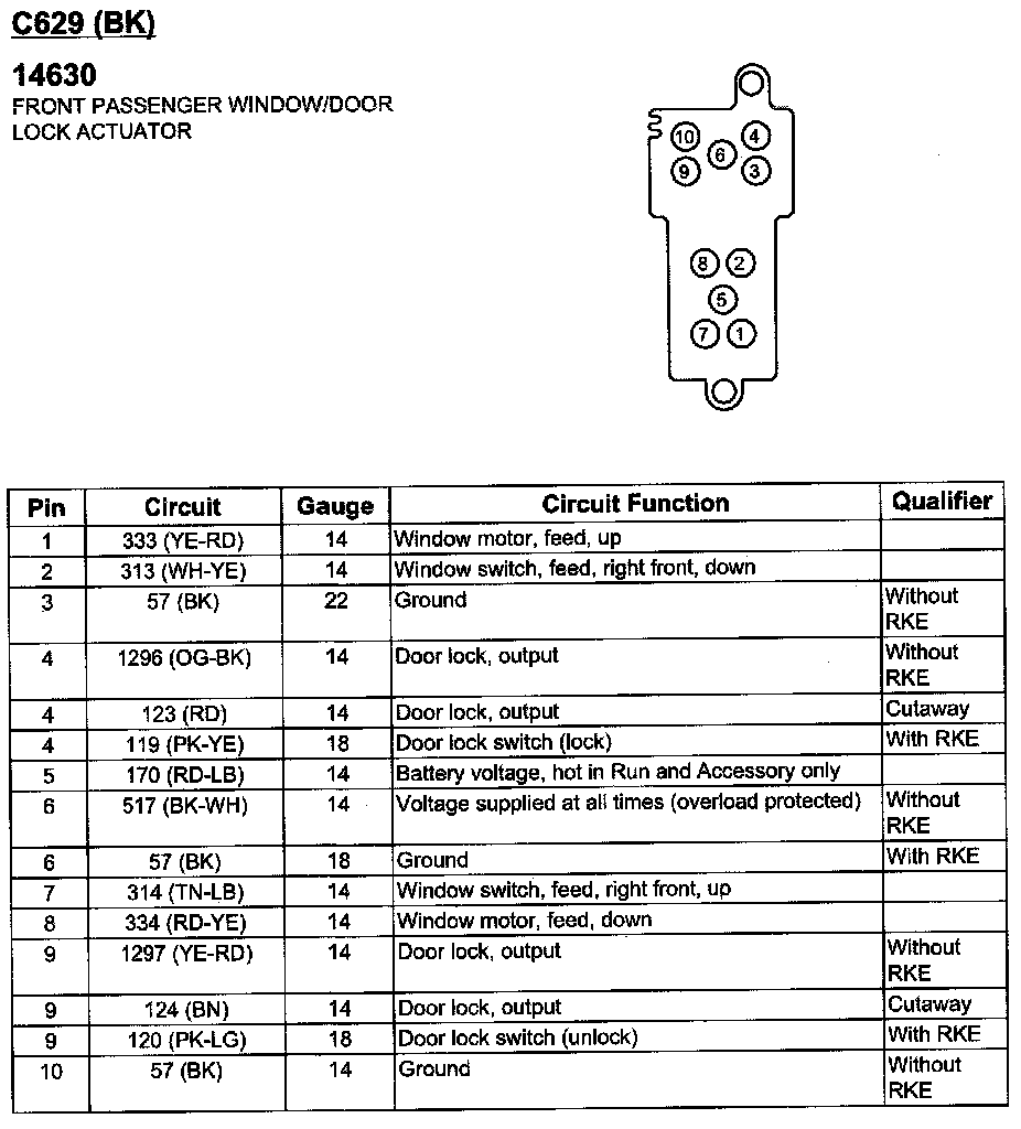 Front Passenger Window/Door Lock Actuator