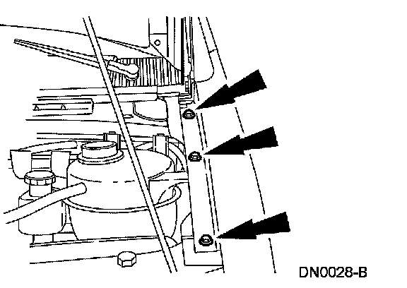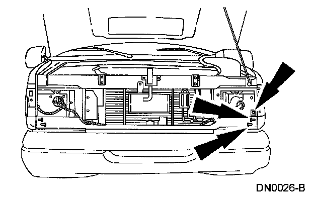 4. Remove the front fender-to-radiator support screw and the 2 front fender-to-front end stone deflector screws.