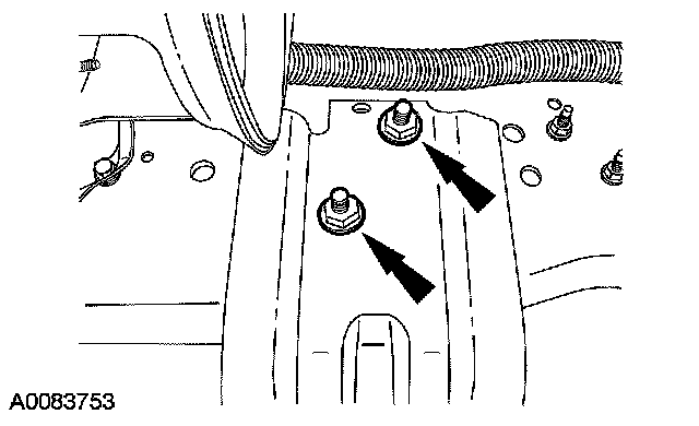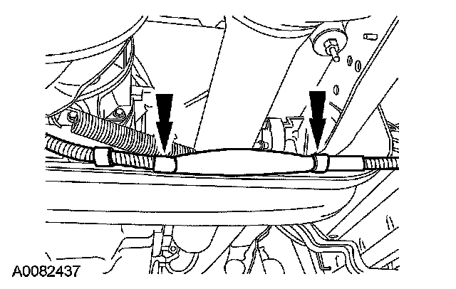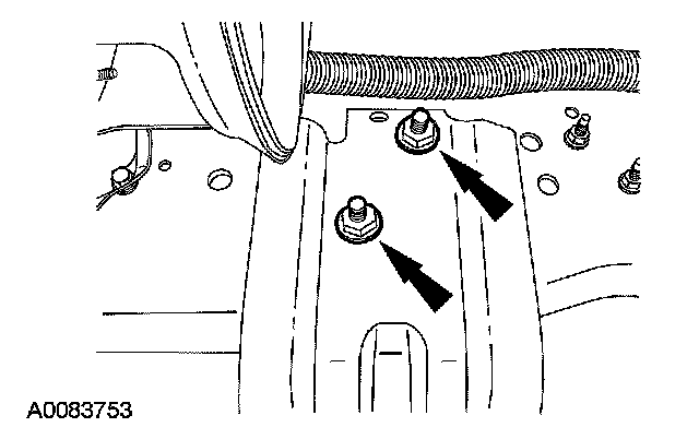 3. Remove the 2 wire harness retainers from the rear crossmember and position the wire harness aside.