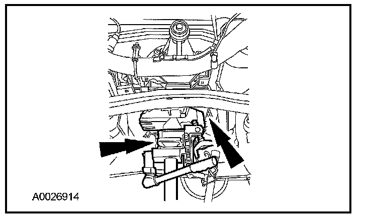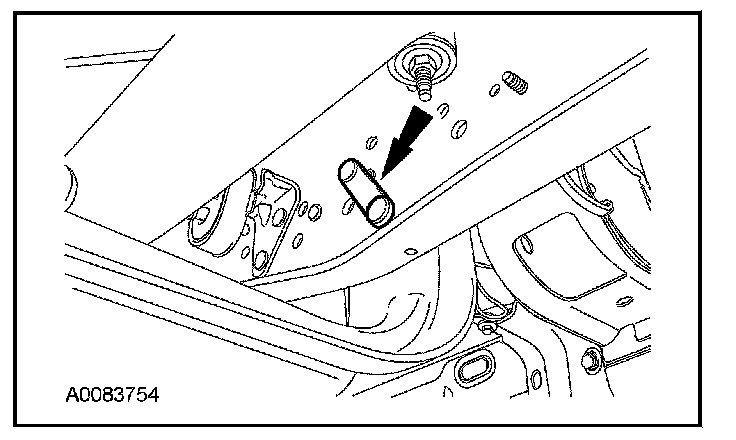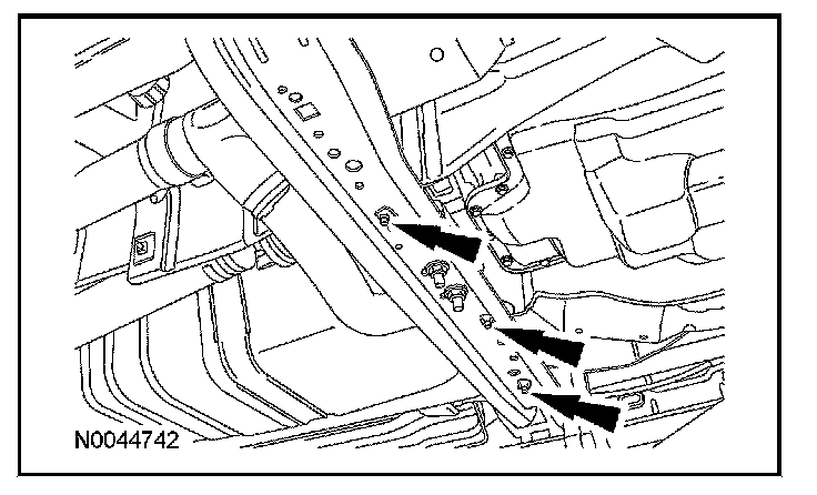 8. Remove the RH crossmember bolt and transmission support crossmember.