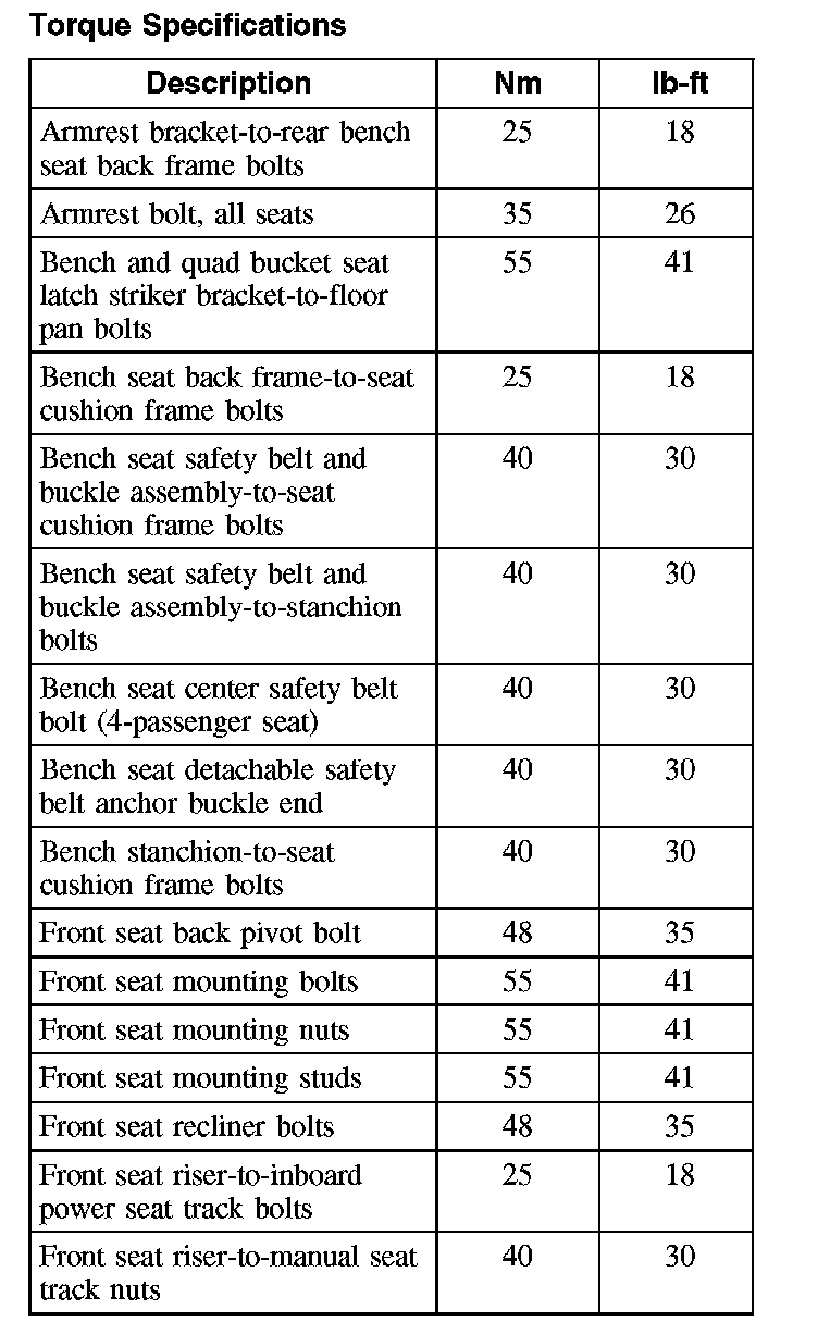 Torque Specifications (Part 1):