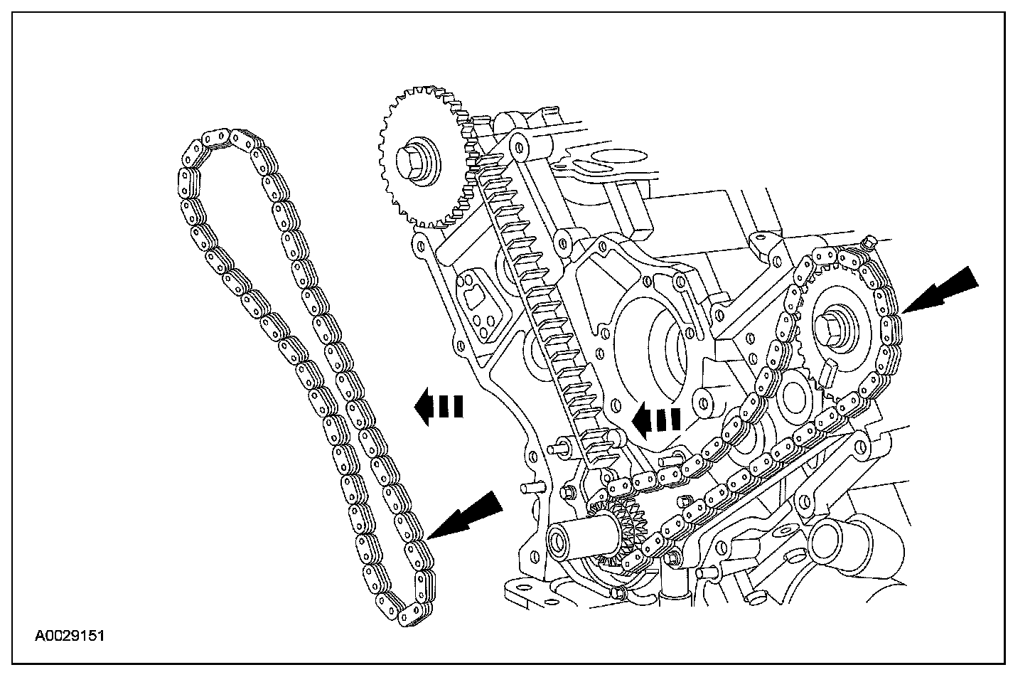37. Remove the timing chains and crankshaft sprocket.