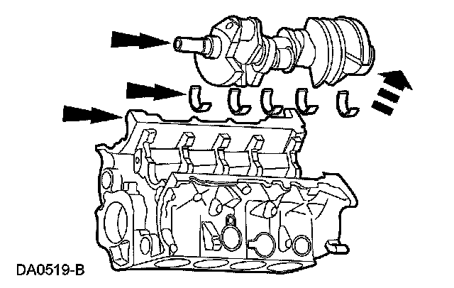 63. Remove the crankshaft and the upper crankshaft main bearings from the cylinder block.