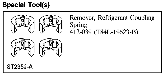 3. CAUTION: Do not use a screwdriver or similar tool to remove the A/C tube lock coupling spring; this can cause axial scratches across the O-ring seal grooves resulting in refrigerant leaks.