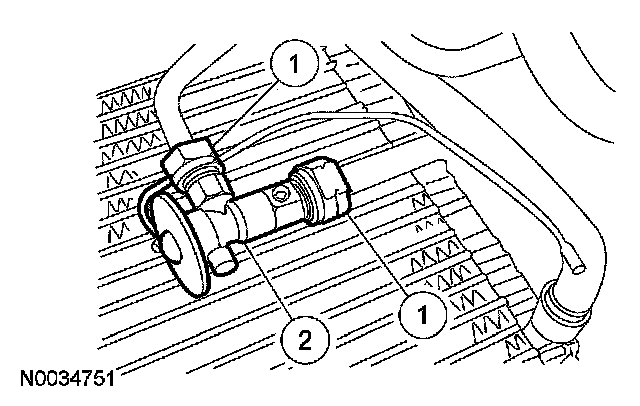 1 CAUTION: Use a wrench on each side of the fitting to prevent damage to the A/C fitting.