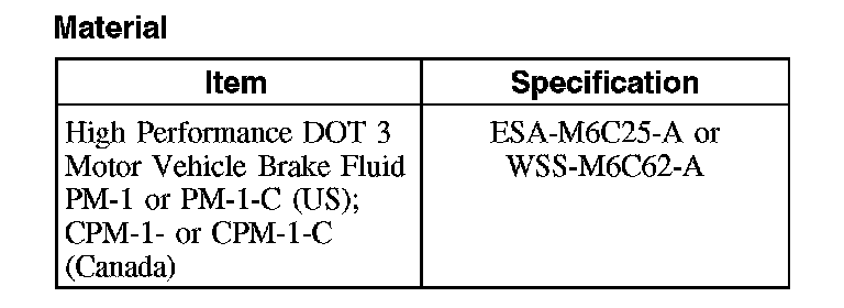 CAUTION: Brake fluid is harmful to painted and plastic surfaces. If brake fluid is spilled onto a painted or plastic surface, immediately wash it with water.