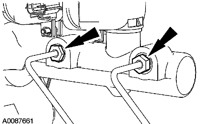 5. If the brake master cylinder has been primed at the bench, install it in the vehicle.
