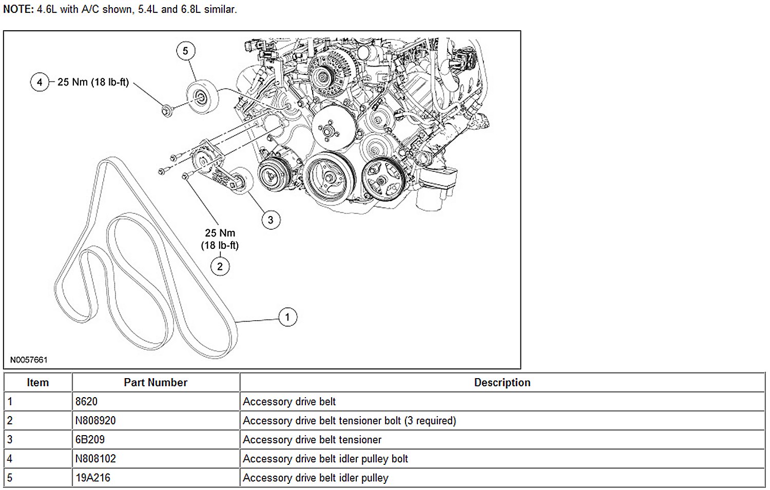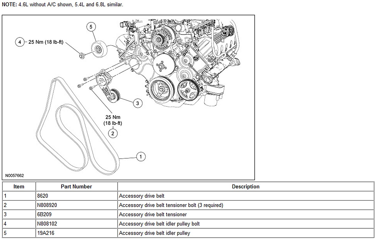 4.6L Without A/C Shown, 5.4L And 6.8L Similar: