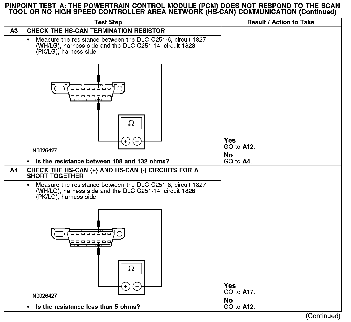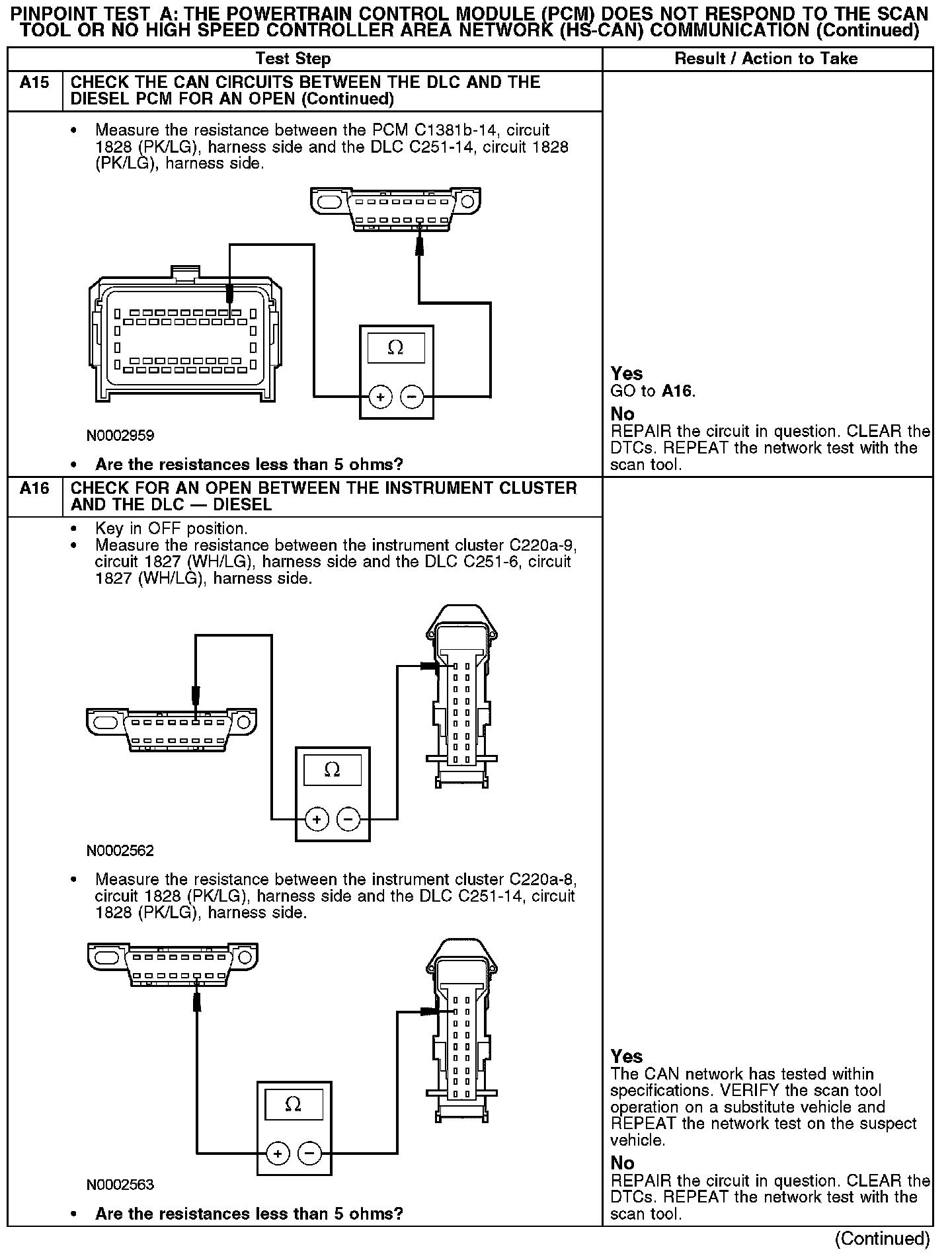 - Circuit 1828 (PK/LG) open, short to ground or voltage (HS-CAN -)