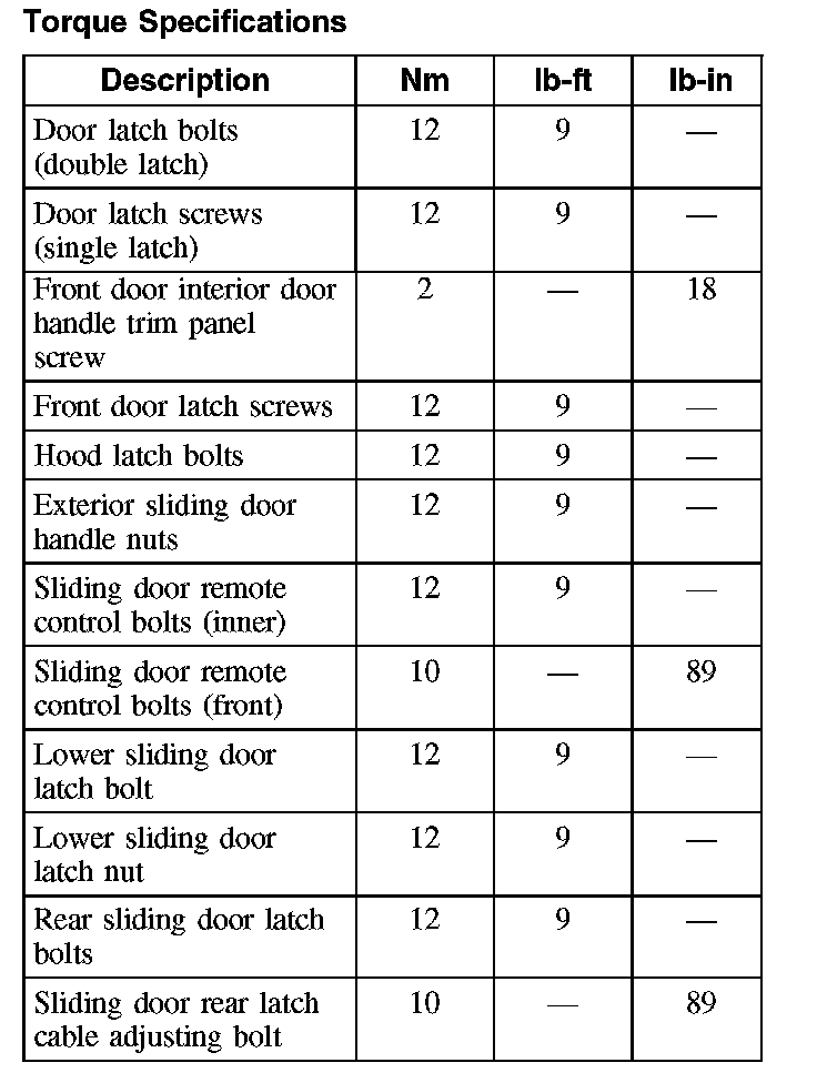 Torque Specifications: