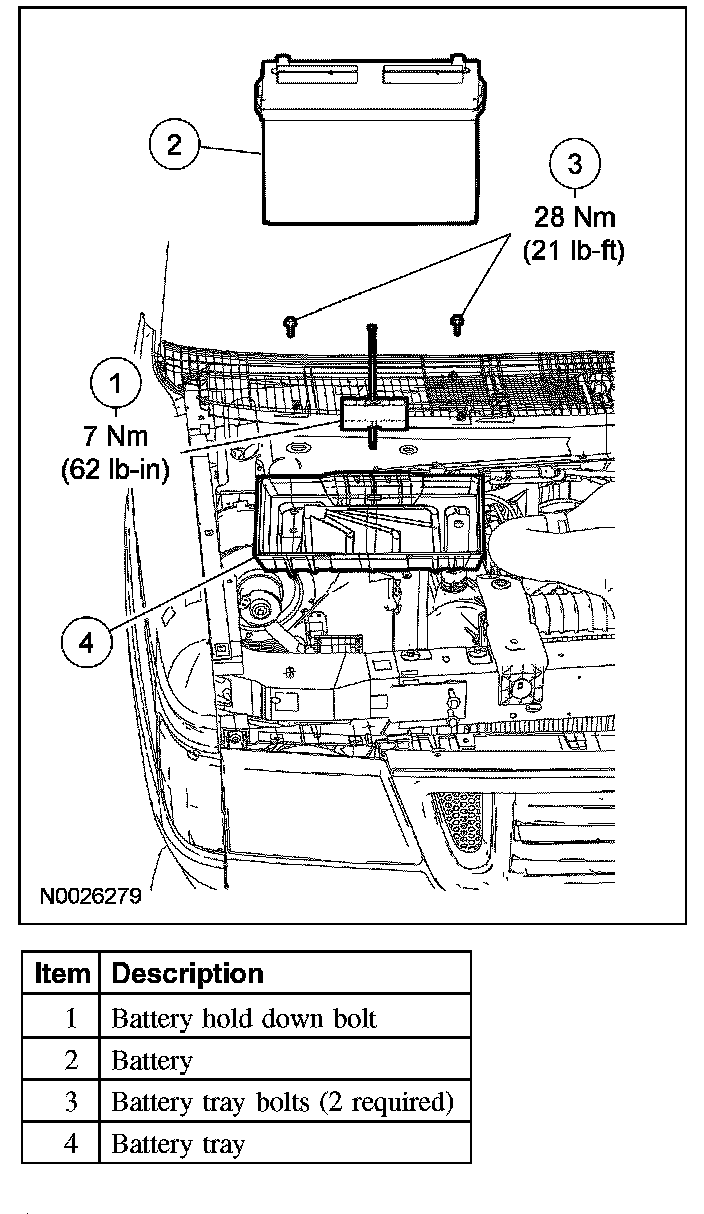 Remove the 2 bolts and the battery tray.