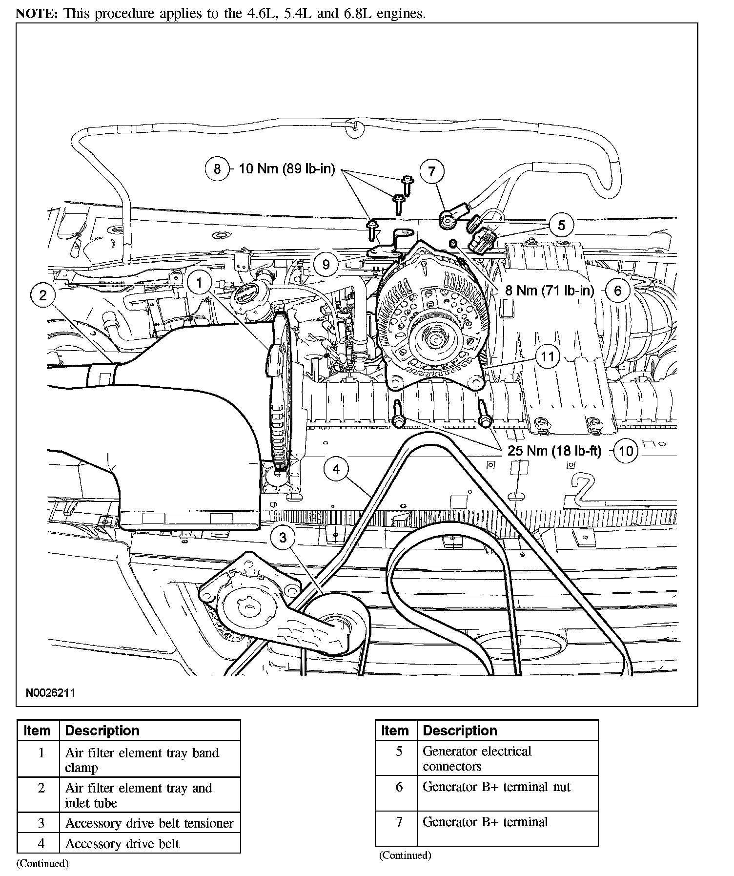 5. Position the generator B+ protective cover aside, remove the B+ terminal nut and position the B+ terminal aside.