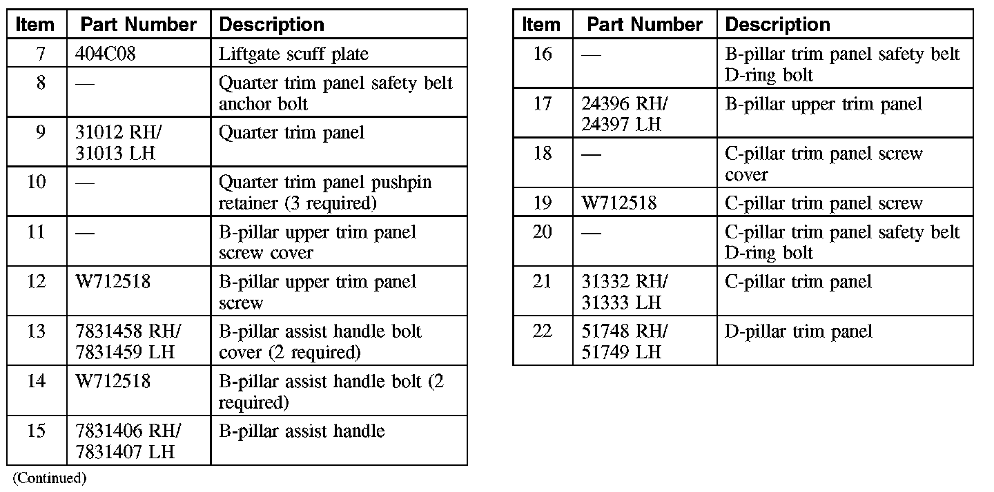 Interior Moulding / Trim: Diagrams