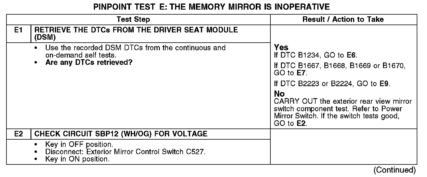 PINPOINT TEST E: THE MEMORY MIRROR IS INOPERATIVEE1-E2: