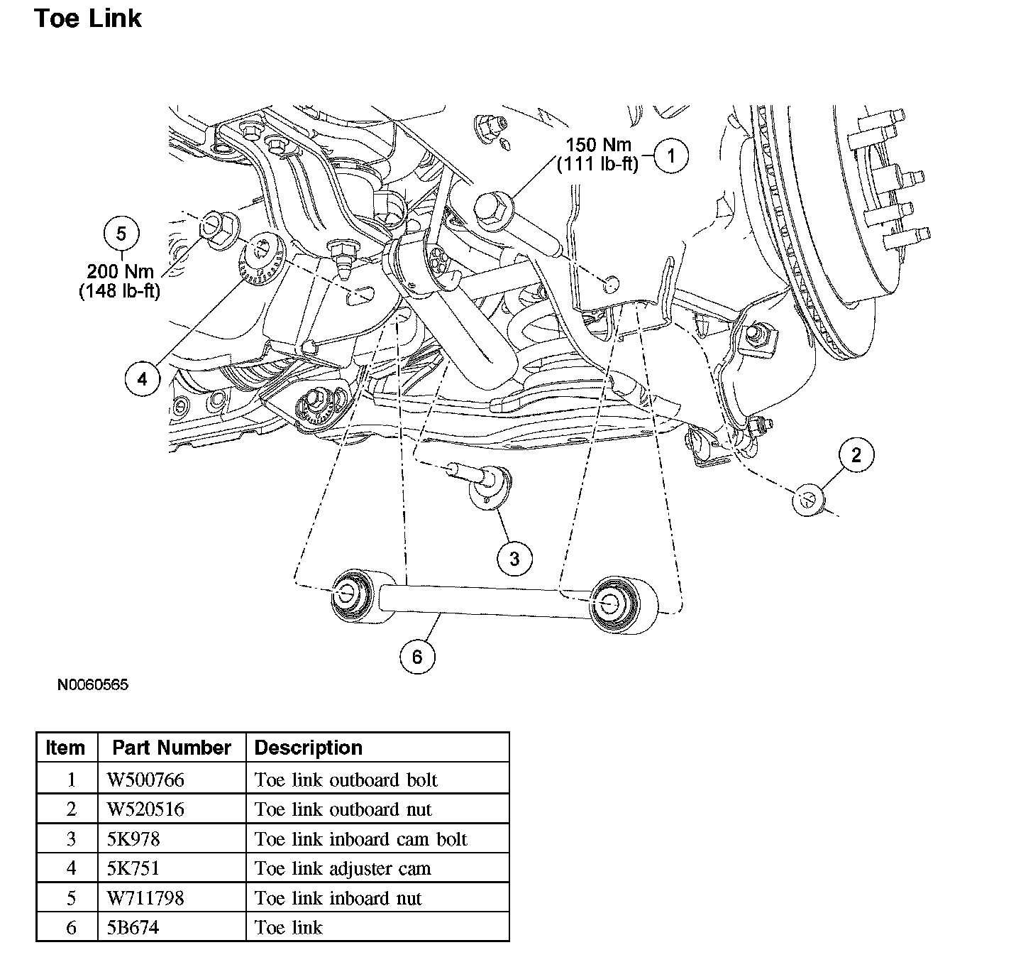 2. Remove and discard the toe link inboard nut, cam adjuster and cam bolt.