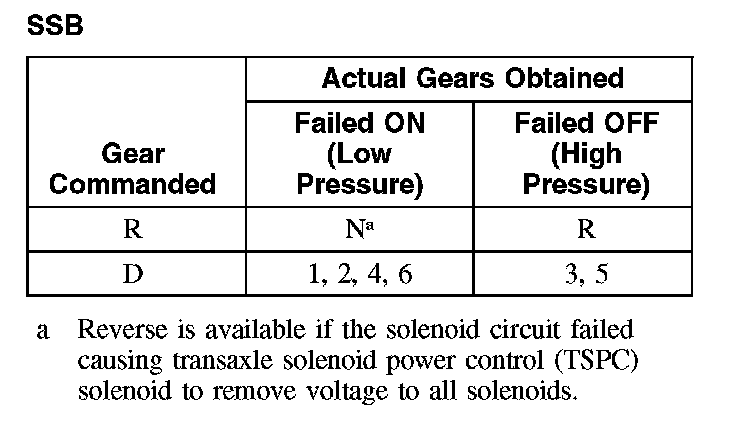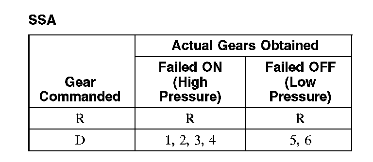 Shift Solenoid Failure Mode Chart "Failed ON" or "Failed OFF"
