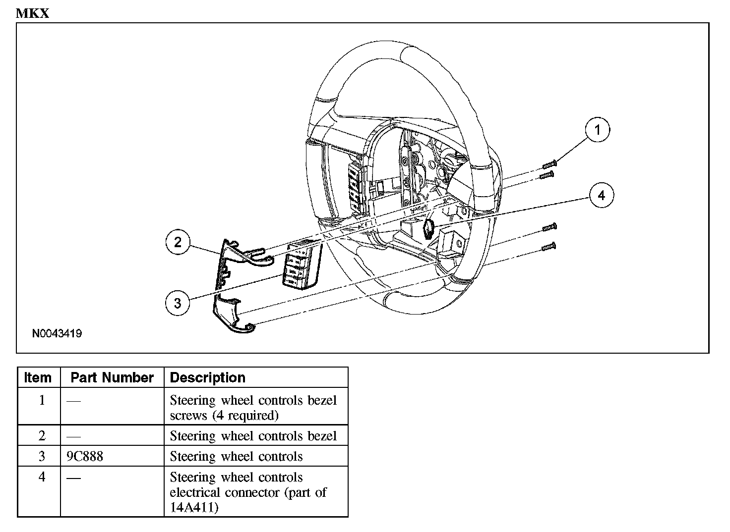 2. Remove the 4 screws and the steering wheel controls bezel.