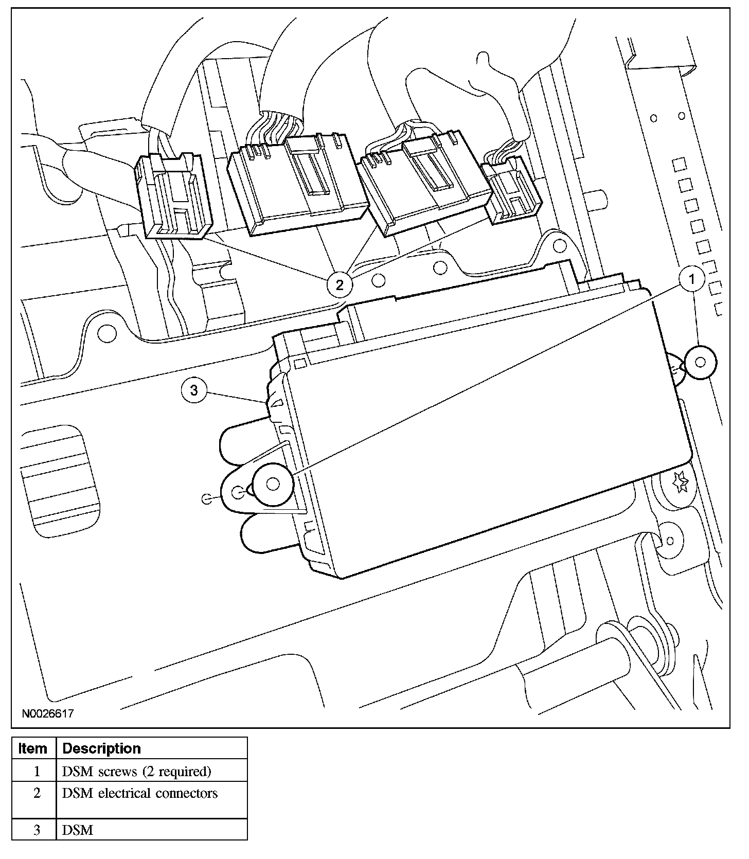 4. Disconnect the 4 electrical connectors and remove the DSM.