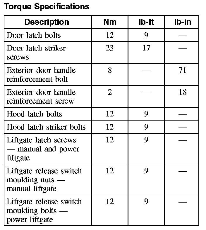 Torque Specifications: