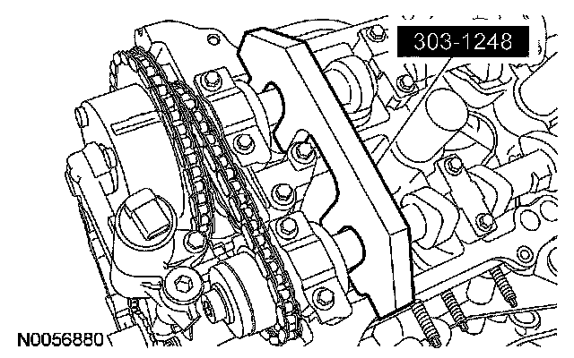 3. NOTE: The special tool will hold the camshafts in the top dead center position.