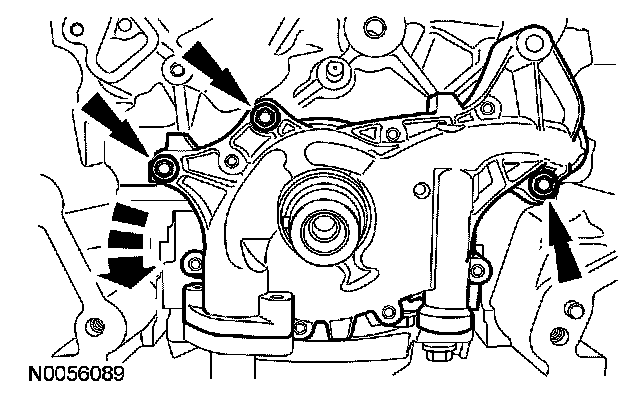 14. Remove the 3 oil pump bolts.