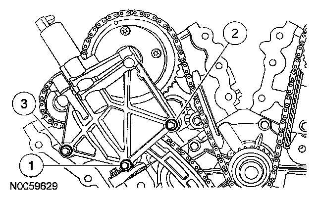 8. NOTE: It may be necessary to rotate the crankshaft slightly to remove slack from the timing chain and install the tensioner.