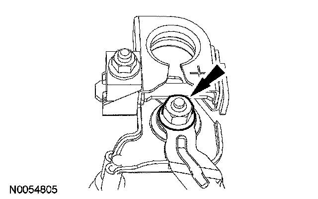 11. Remove the nut and disconnect the power feed from the battery terminal.