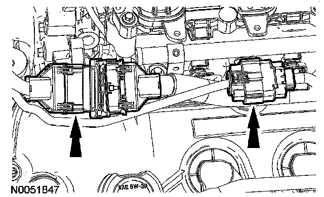 ^ Detach the electrical connector from the LH valve cover.