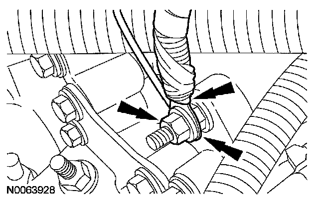28. Remove the bolt and the ground wire from the engine front cover.