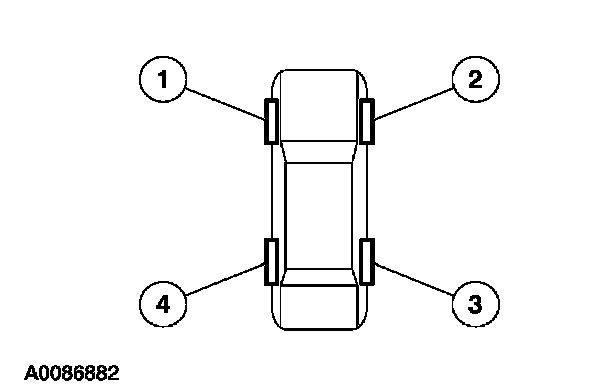 NOTE: The tire pressure sensor training procedure must be done on a single vehicle, in an area without radio frequency noise and at least 1 m (3 ft) away from other vehicles equipped with a Tire Pressure Monitoring System (TPMS).