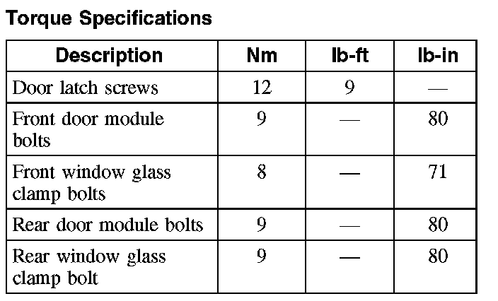 Torque Specifications:
