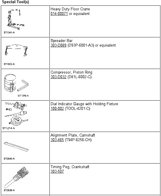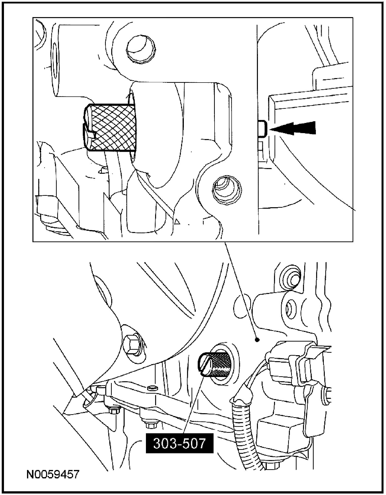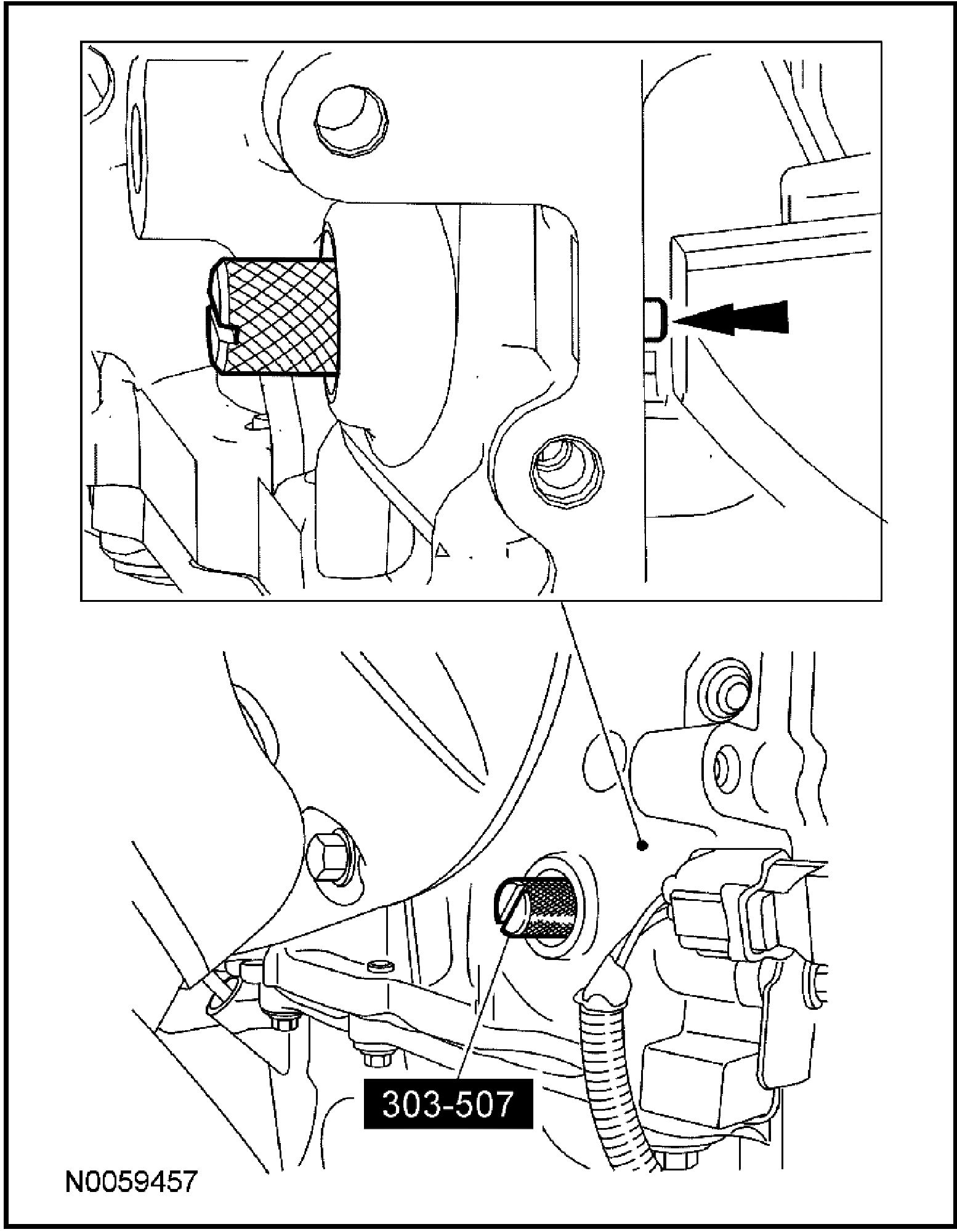 62. CAUTION: The special tool 303-465 is for camshaft alignment only. Using this tool to prevent engine rotation can result in engine damage.