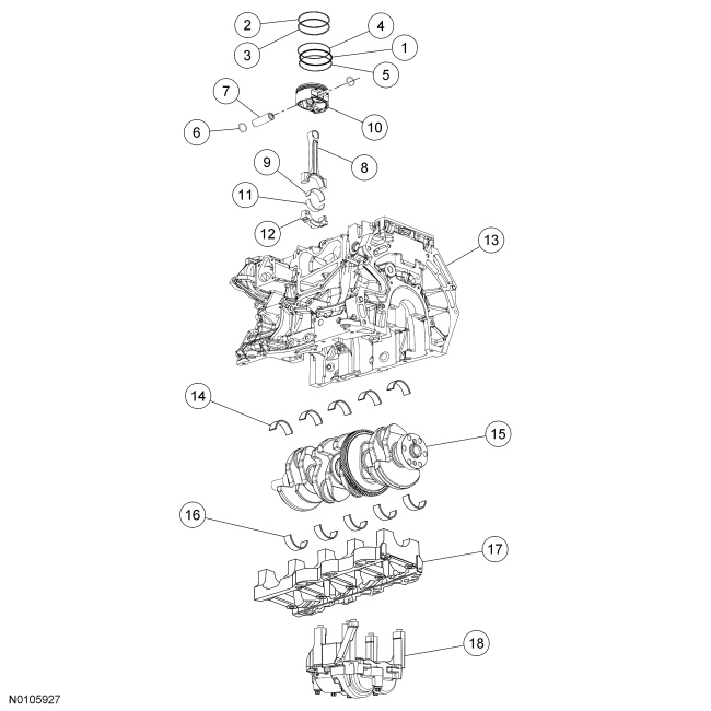 NOTE: Assembly of the engine requires various inspections/measurements of the engine components (engine block, crankshaft, connecting rods, pistons and piston rings). These inspections/measurements will aid in determining if the engine components will require replacement.