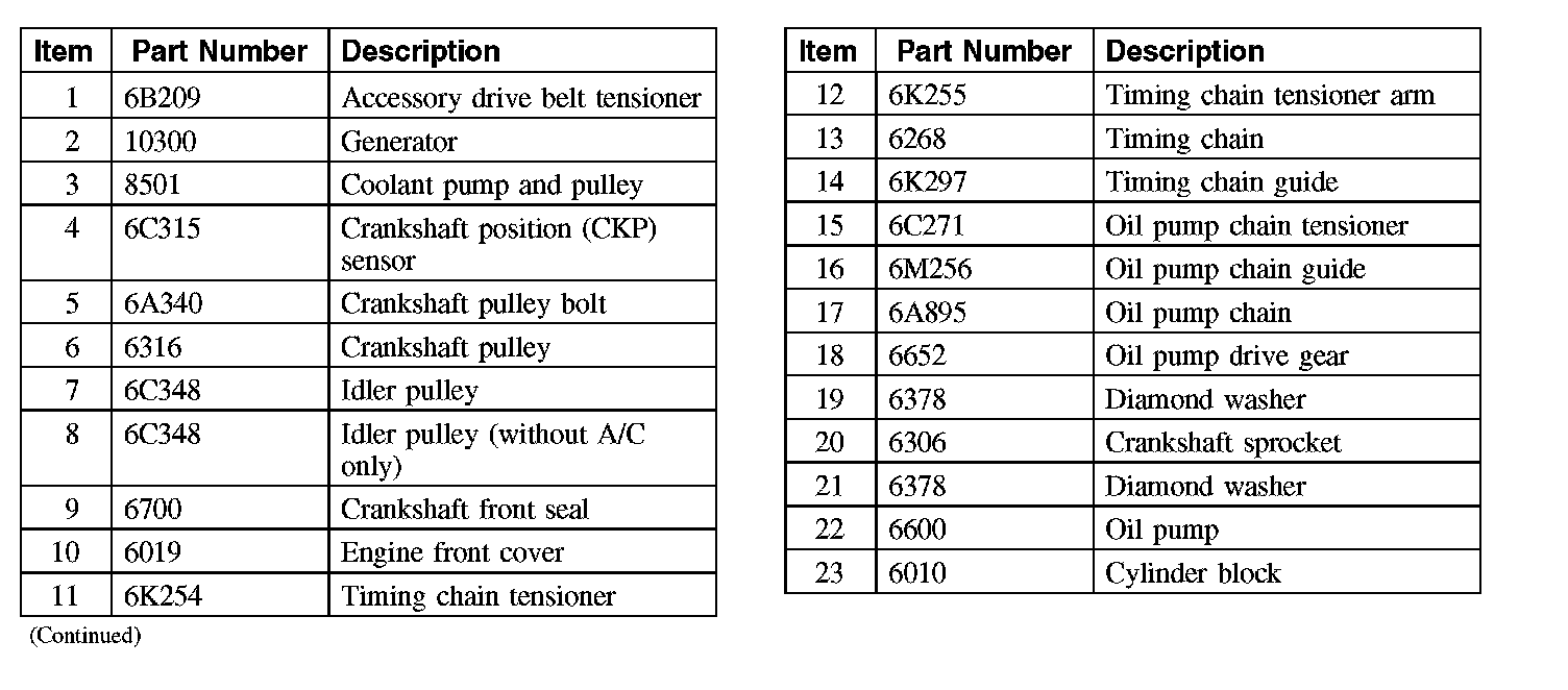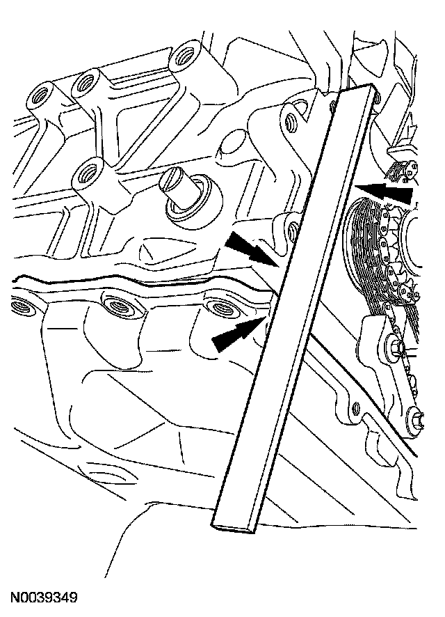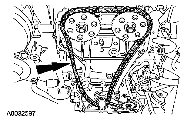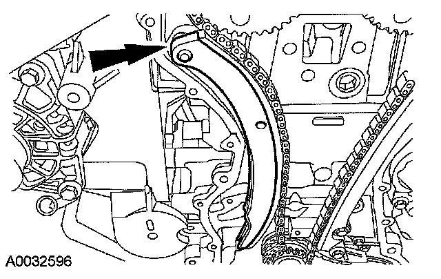 NOTE: Early build engines are equipped with an oil pump chain guide. Late build engines do not have an oil pump chain guide. Also, late build engines use an updated design for the oil pump drive chain and tensioner. Therefore, the oil pump drive components are not interchangeable between early and late build engines.