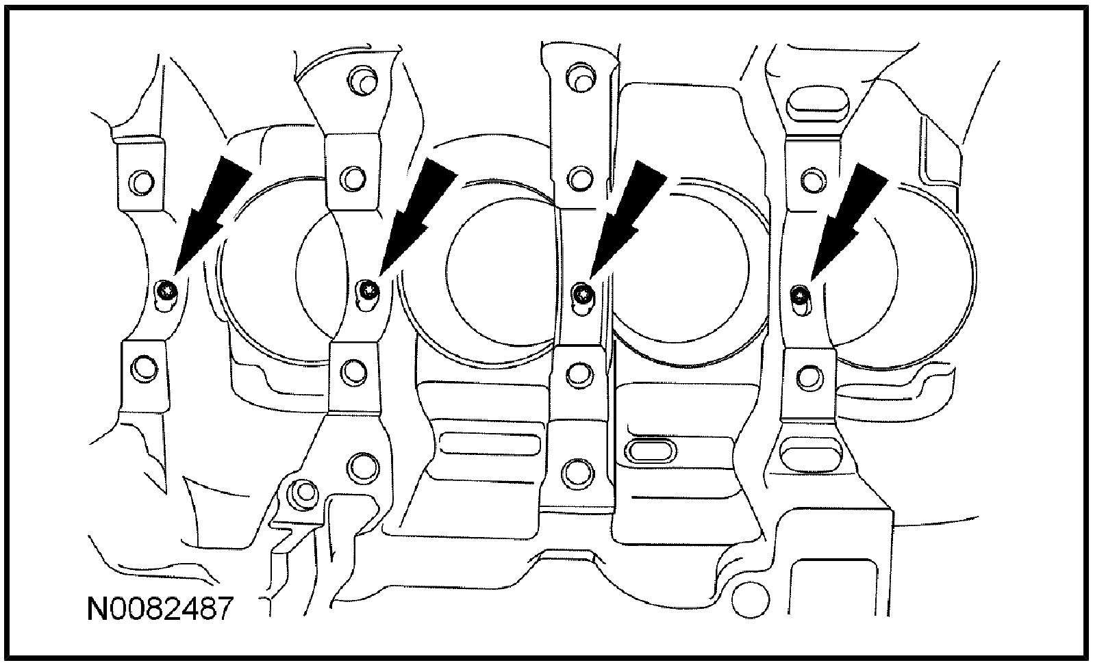 1. NOTE: If the oil squirters are being reused, they must be installed in the same location as marked during disassembly.