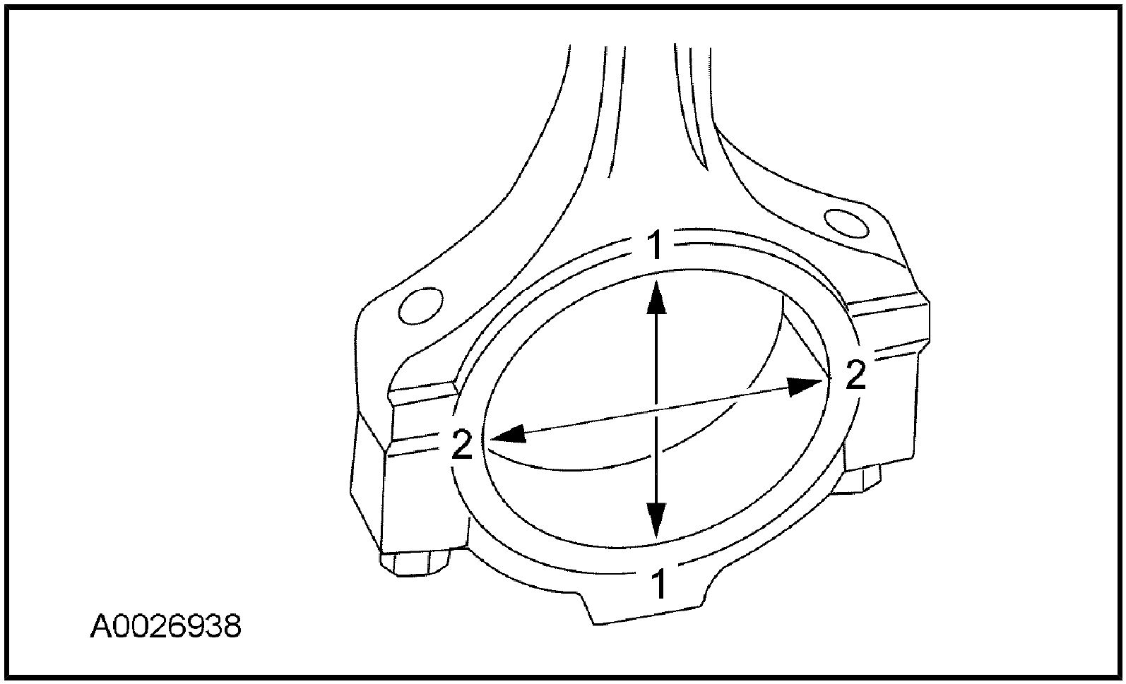 8. Measure the connecting rod large end bore in 2 directions. Record the smallest measurement for each connecting rod.