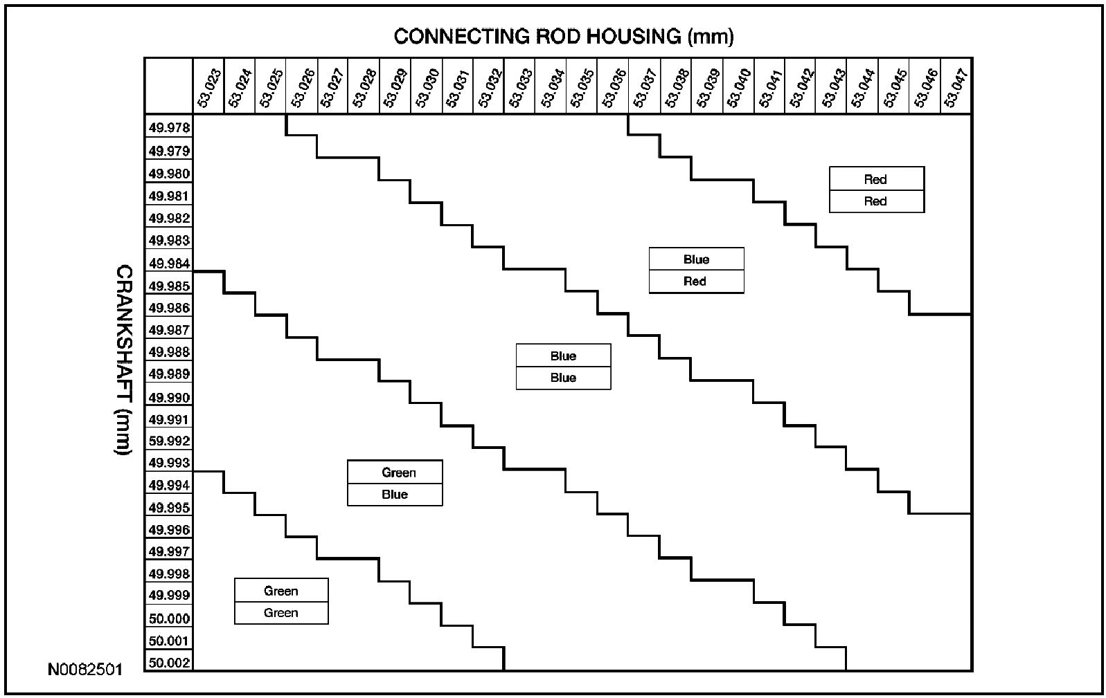 10. Using the chart, select the correct connecting rod bearings for each crankshaft connecting rod journal.