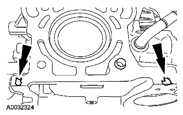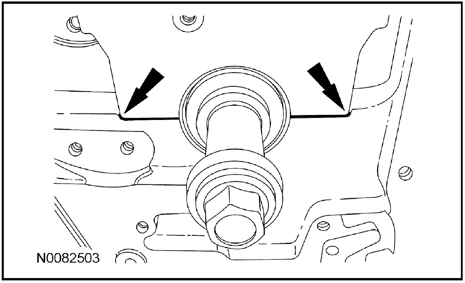 Apply a 2.5 mm (0.09 inch) bead of silicone gasket and sealant to the cylinder head and oil pan joint areas. Apply a 2.5 mm (0.09 inch) bead of silicone gasket and sealant to the front cover.