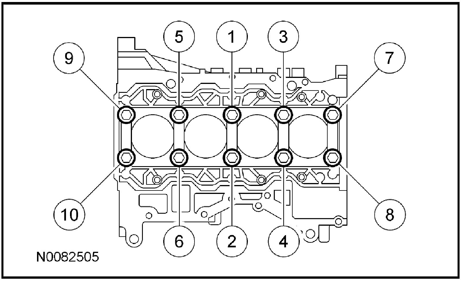 4. Using the original main bearing beam bolts, install and tighten the 10 main bearing beam bolts.