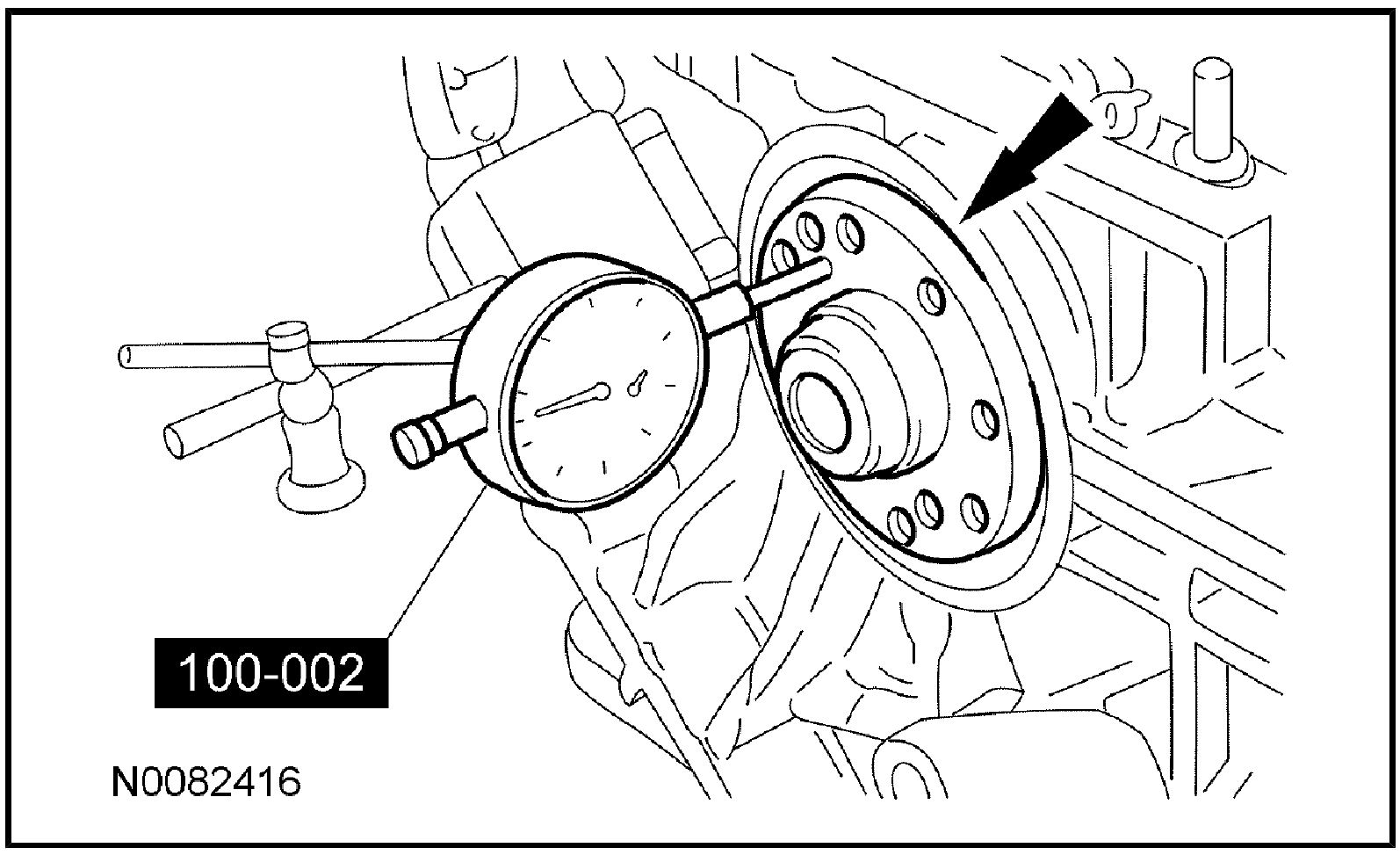 30. NOTE: The special tool will contact the crankshaft and prevent it from turning past TDC. However, the crankshaft can still be rotated in the counterclockwise direction. The crankshaft must remain at the TDC position until the timing drive components and crankshaft pulley are installed.