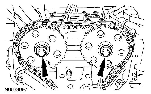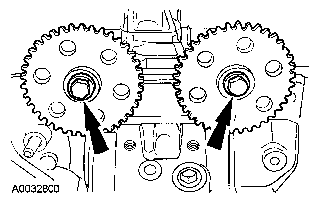 53. Install the camshaft sprockets and the bolts. Do not tighten the bolts at this time.