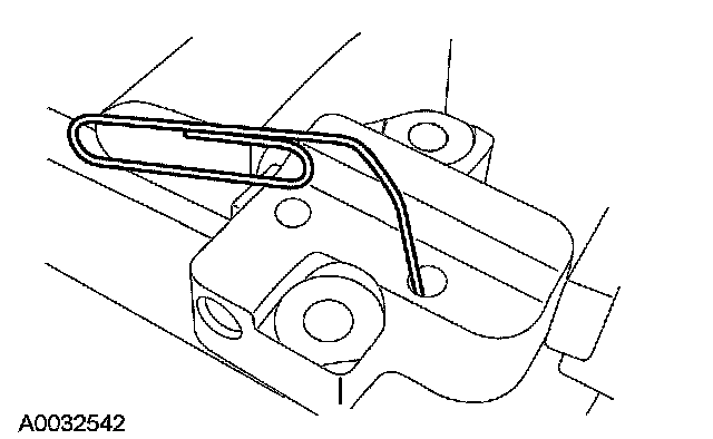 60. Install a paper clip into the hole in the tensioner housing to hold the ratchet assembly and the plunger in during installation.