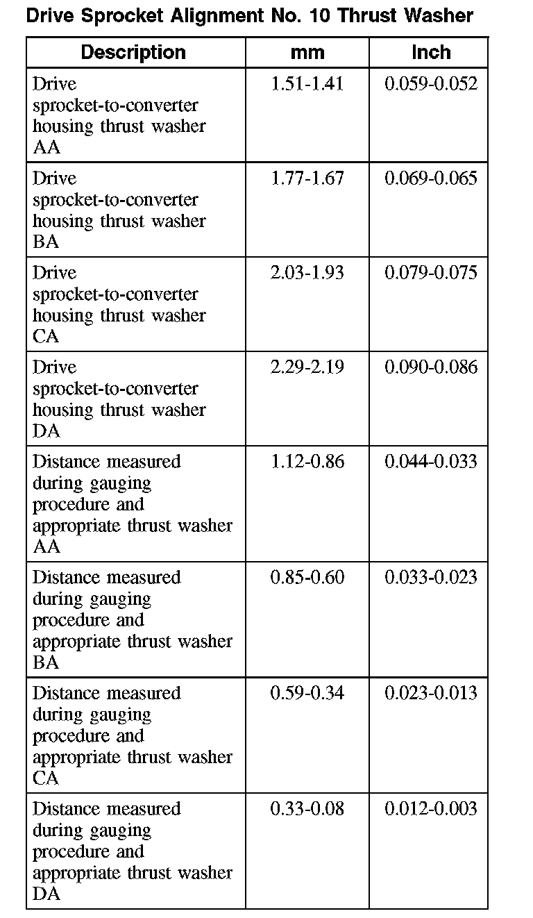 Drive Sprocket Alignment No. 10 Thrust Washer: