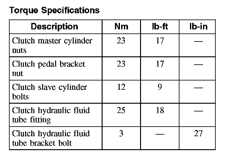 Torque Specifications:
